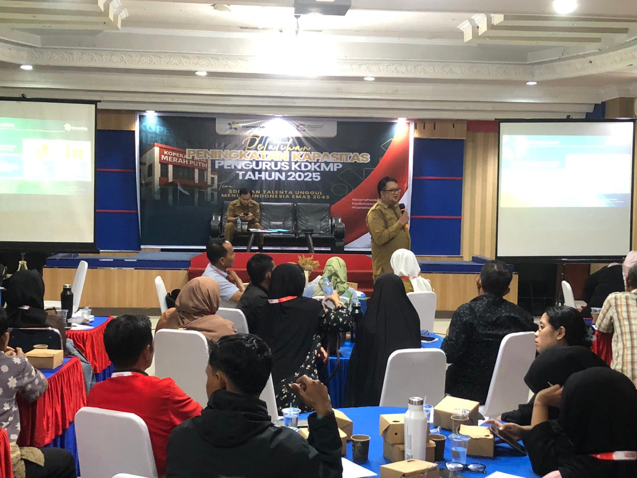 SINTANG – Kepala Bidang Koperasi pada Dinas Perindustrian, Perdagangan, Koperasi dan UKM Kabupaten Sintang, Nashirul Haq, menjadi salah satu narasumber dalam kegiatan Pelatihan Peningkatan Kompetensi Sumber Daya Manusia (SDM) bagi Pengurus Koperasi Desa/Kelurahan Merah Putih Angkatan Pertama, yang berlangsung di Aula CU Keling Kumang, Selasa (11/11/2025).