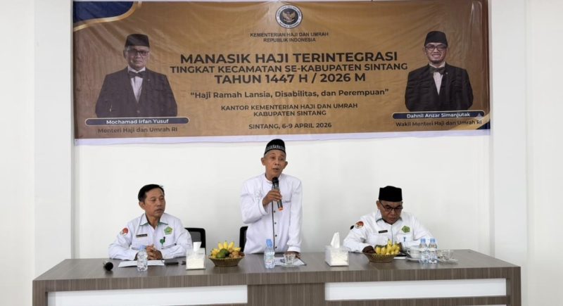 SINTANG, DN – Kegiatan pembekalan manasik haji bagi calon jemaah haji tahun 1447 Hijriah/2026 Masehi resmi dimulai di Aula Kantor Kementerian Haji dan Umroh Kabupaten Sintang pada Senin, 6 April 2026. Agenda ini menjadi salah satu tahapan penting dalam memberikan pemahaman menyeluruh kepada calon jemaah sebelum diberangkatkan ke Tanah Suci.